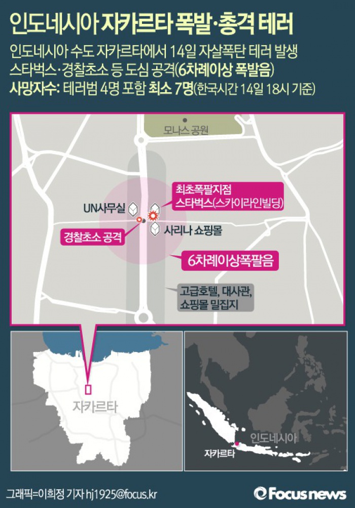 | △ [그래픽] 인도네시아 자카르타 폭발·총격 테러 발생 |