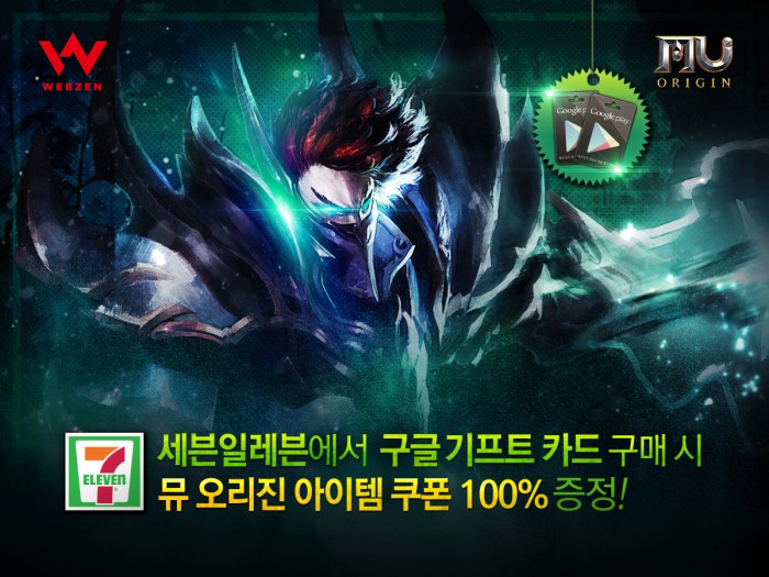 (서울=포커스뉴스) 웹젠(대표 김태영)은 전국의 세븐일레븐 매장에서 구글플레이 기프트카드를 구매하면 '뮤 오리진'의 게임 아이템들을 오는 28일까지 지급하는 프로모션을 진행한다.