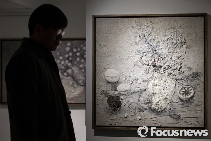 (서울=포커스뉴스) 15일 오후 서울 용산구 갤러리 조은에서 김덕용, 전병현 작가의 '갤러리 조은 개관전'이 열리고 있는 가운데 관람객이 전병현 작가의 작품을 감상하고 있다.