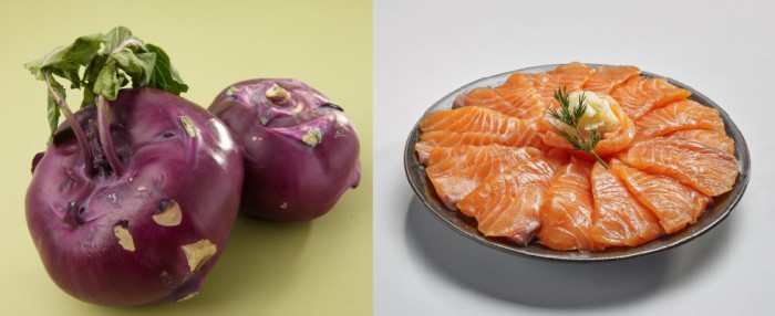 변지현 마케팅 팀장은 “이달 들어 다시 영하로 내려가는 추위가 지속되고 미세먼지도 꾸준히 발생해 겨울철 건강관리에 대한 소비자들의 관심이 늘고 있다”며 “가정에서 반찬이나 간단한 간식거리로 먹고, 건강도 챙길 수 있는 인기 슈퍼푸드를 저렴한 가격에 준비했다”고 말했다.롯데마트는 1월21일부터 7일 간 슈퍼푸드 모음전을 열고, 콜라비(왼쪽)와 생 연어회(오른쪽)을 저렴하게 선보인다.<사진제공=롯데마트>