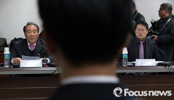 (서울=포커스뉴스) 18일 오후 서울 종로구 정부서울청사에서 장휘국(왼쪽) 광주시교육감이 누리과정 해법 논의를 위해 이준식 부총리 겸 교육부 장관과 만나 모두발언을 하고 있다. 왼쪽부터 장 교육감, 이준식 부총리, 조희연 서울시교육감.