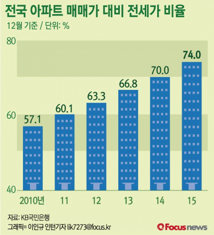 (서울=포커스뉴스) 전셋값이 집값의 턱밑까지 치솟으면서 이른바 ‘깡통전세’ 리스크가 커지고 있다..