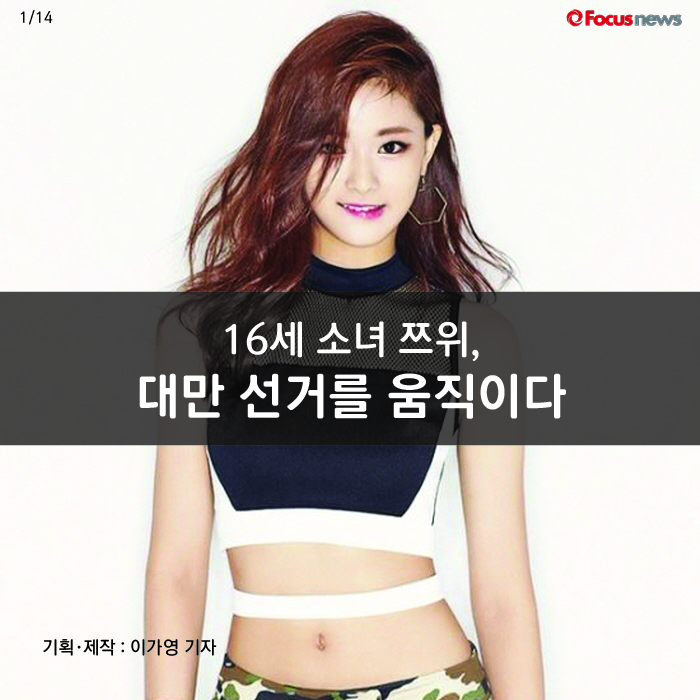 (서울=포커스뉴스) 아이돌그룹 트와이스의 대만 출신 멤버 쯔위로 인해 한국‧중국‧대만이 떠들썩합니다. 발단은 지난해 11월, 쯔위가 대만의 국기를 흔들었기 때문입니다. 이 행동으로 인해 대만은 정권 교체를 이루었고, 첫 여성 총통을 맞이했습니다. 16세 소녀 쯔위 논란, 카드뉴스로 정리했습니다.