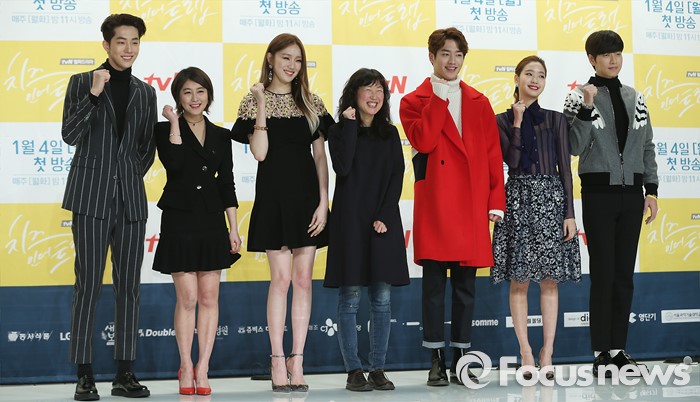 드라마 '커피프린스' '하트투하트'를 연출한 이윤정 PD가 메가폰을 잡았다. 김남희·고선희·정연신 작가가 공동집필했다. 박해진, 김고은, 서강준, 이성경, 남주혁 등이 열연하고 있다.(서울=포커스뉴스) 22일 오후 서울 영등포구 타임스퀘어 아모리스홀에서 열린 tvN 월화드라마 '치즈인더트랩' 제작발표회에 참석한 배우 남주혁(왼쪽부터), 박민지, 이성경, 이윤정 감독, 서강준, 김고은, 박해진이 포토타임을 갖고 있다. 2015.12.22 김유근 기자