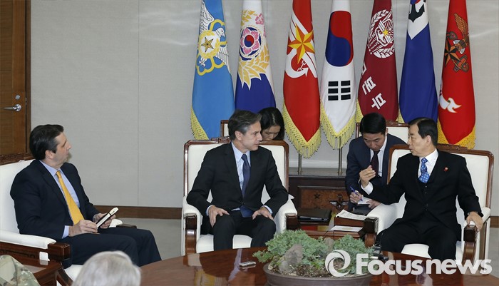(서울=포커스뉴스) 20일 오전 서울 국방부에서 한민구 장관과 토니 블링큰 미 국무부 부장관이 북한의 제4차 핵실험에 대한 평가와 함께 한·미 양국의 공조 방안 등을 논의하고 있다. 맨 왼쪽은 마크 리퍼트 주한미대사.