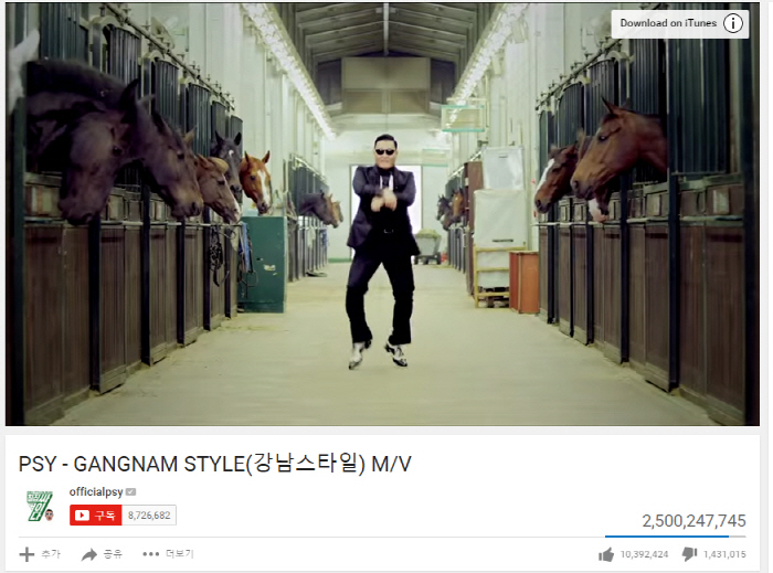 구글 유튜브 사업부는 지난해 3월 계속되는 ‘강남스타일’의 신기록 경신에 21억으로 설정해놓은 최대 조회 수 시스템을 경 단위인 922경 뷰로 업그레이드를 해 눈길을 모으기도 했다.