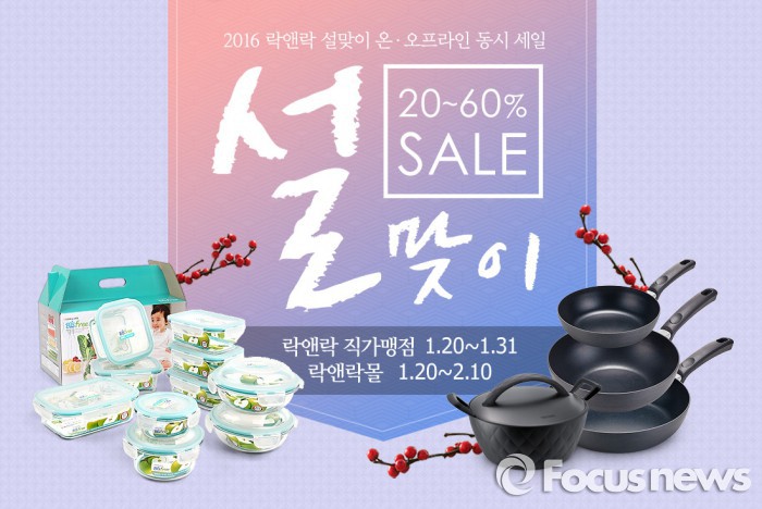 (서울=포커스뉴스) 락앤락은 온라인 쇼핑몰 락앤락몰과 전국 32개 직·가맹점에서 ‘설 맞이 온·오프라인 동시 세일’을 20일부터 시작한다.