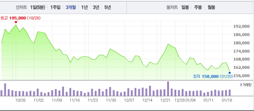 이어 김 연구원은 “수출 시장 포화로 중국은 가동률 하락과 수출량 정체 국면에 진입했다”며 “판재류 수출량은 감소세로 전환했다”고 설명했다.포스코 주가 흐름<사진출처=네이버 캡쳐>