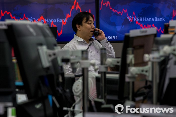 (서울=포커스뉴스) 코스피 지수가 외국인과 기관의 매도 공세에 전 거래일보다 44.19포인트(2.34%) 하락한 1,845.45에 거래를 마친 20일 오후 서울 중구 KEB하나은행 딜링룸에서 한 딜러가 업무를 보고 있다. 이날 원달러 환율은 전 거래일보다 8.1원 오른 1214원에 거래를 마감했다.
