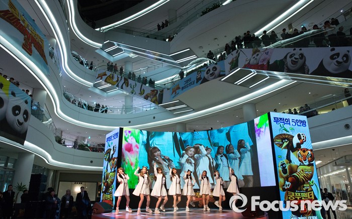 (서울=포커스뉴스) 20일 오후 서울 영등포구 타임스퀘어에서 열린 할리우드 애니메이션 '쿵푸팬더 3' 레드카펫 행사에 참석한 그룹 러블리즈가 축하무대를 펼치고 있다.