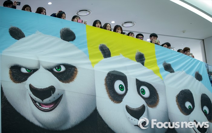 (서울=포커스뉴스) 20일 오후 서울 영등포구 타임스퀘어에서 열린 할리우드 애니메이션 '쿵푸팬더 3' 레드카펫 행사에 자리한 시민들이 행사 시작을 기다리고 있다.