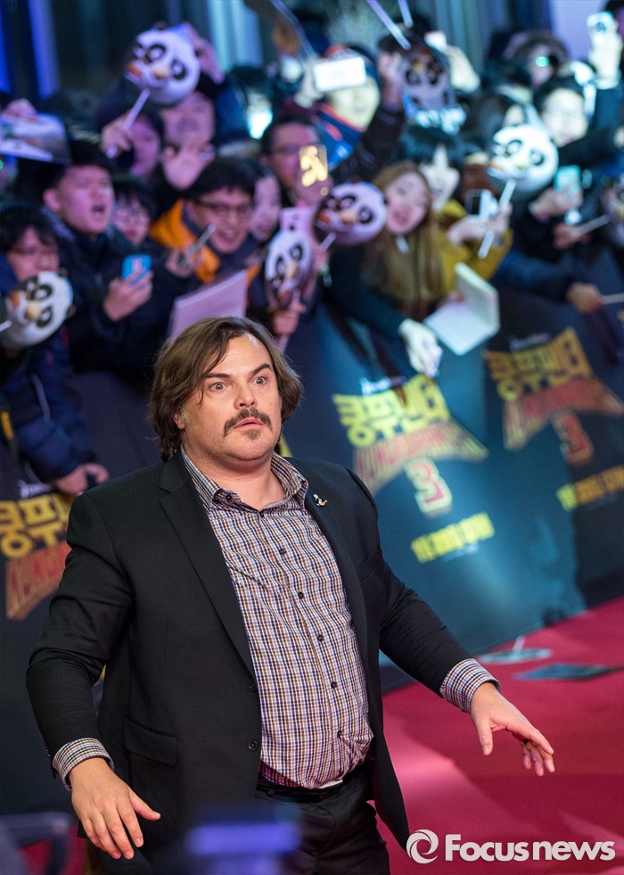(서울=포커스뉴스) 할리우드 애니메이션 '쿵푸팬더 3' 홍보차 내한한 배우 잭 블랙이 20일 오후 서울 영등포구 타임스퀘어에서 열린 레드카펫 행사에 참석해 포즈를 취하고 있다.
