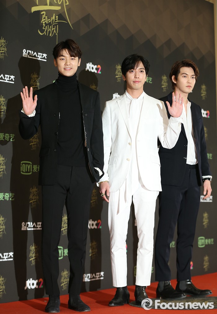 (서울=포커스뉴스) 21일 서울 동대문구 경희대학교 평화의 전당에서 열린 제 30회 골든디스크 시상식에 참석한 씨엔블루의 멤버들이 포토타임을 갖고 있다.