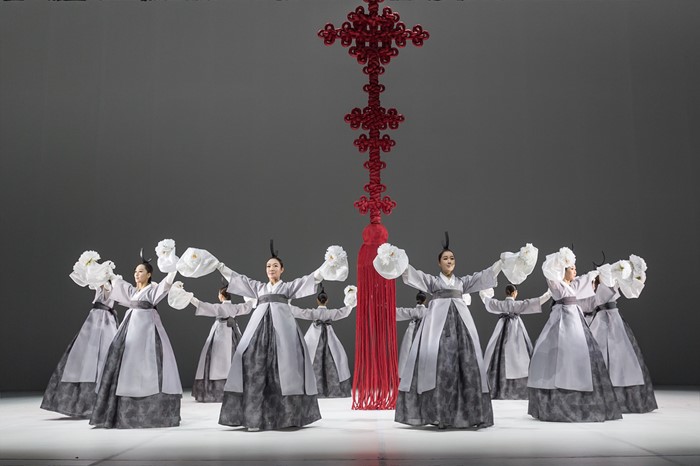 (서울=포커스뉴스) 20일 중국 베이징 21세기극장에서 열린 2016년 한국관광의 해 개막행사에서 정구호 감독이 한국의 전통 춤을 현대적 감각으로 재창조한 국립무용단의 ‘향연(饗宴)’ 공연이 펼쳐지고 있다. <사진제공=문화체육관광부>
