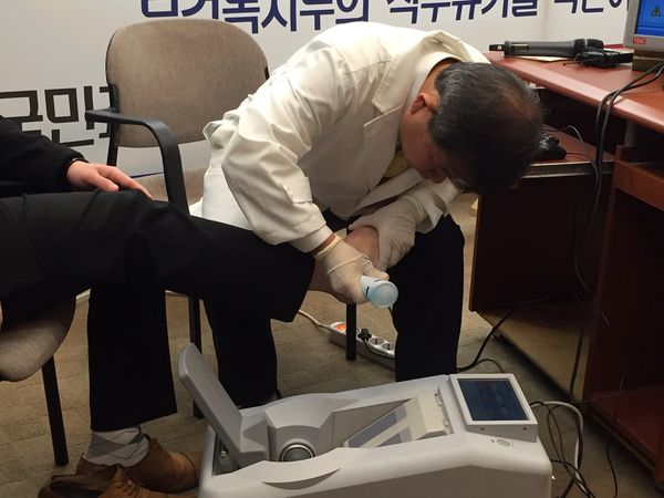한의협 관계자는 “의협이 진정으로 국민건강을 위하는 의료인단체라면 더 이상 뒤에 숨어서 반대를 위한 반대만 하지 말고 우리의 공동 대국민 설문조사 제안을 자신있고 당당하게 받아들이기 바란다”며 “한의사 의료기기 사용은 국민건강을 위해서라도 더 이상 미룰 수 없는 문제이니만큼 공동 설문조사 결과에 따라 이 사안에 대한 최종 결론을 맺자”고 거듭 강조했다.김필건 대한한의사협회장은 지난 12일 한의사 의료기기 사용을 촉구하기 위해 긴급 기자간담회를 열고, 골밀도기를 직접 시연했다. <사진=민승기 기자>