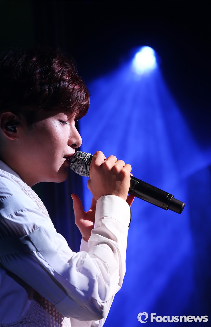 (서울=포커스뉴스) 25일 오후 서울 용산구 현대카드 언더스테이지에서 열린 미니앨범 '어린왕자' 쇼케이스에 참석한 가수 려욱이 신곡 '알 수도 있는 사람'의 무대를 선보이고 있다.