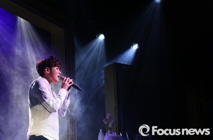 (서울=포커스뉴스) 25일 오후 서울 용산구 현대카드 언더스테이지에서 열린 미니앨범 '어린왕자' 쇼케이스에 참석한 가수 려욱이 신곡 '알 수도 있는 사람'의 무대를 선보이고 있다.