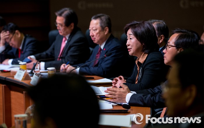 (서울=포커스뉴스) 심상정 정의당 상임대표가 26일 오전 서울 중구 대한상공회의소 국제회의장에서 열린 '중장기 경제어젠다 추진 전략회의'에 자리해 축사하고 있다. 이날 회의에 자리한 여야정 대표 및 산학연 대표 70여명은 규제 근본 틀 개선, 기업문화 개선, 국민 행복 위한 서비스 발전 등을 논의 할 예정이다.