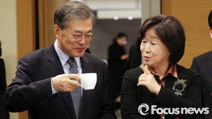 (서울=포커스뉴스) 중장기 어젠다 추진 전략회의가 26일 대한상공회의소 국제회의장에서 열린 가운데 회의 전 문재인 더불어민주당 대표와 심상정 정의당 상임대표가 대화를 나누고 있다.