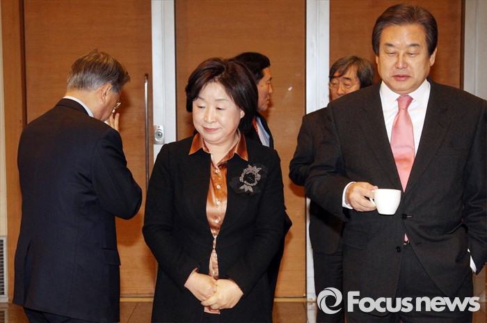 | △ 티타임 갖는 김무성-심상정 |