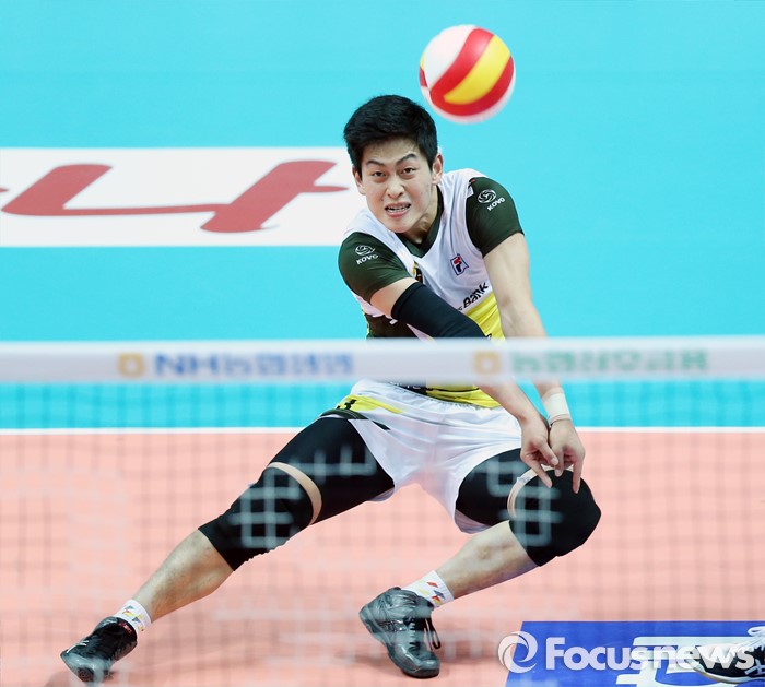 (안산=포커스뉴스) 26일 안산상록수체육관에서 열린 '2015-2016NH농협 V-리그' 남자부 OK저축은행-삼성화재 경기에서 OK저축은행 리베로 정성현이 정확한 리시브를 하고 있다.