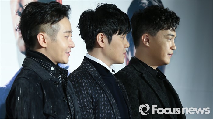 (서울=포커스뉴스) 27일 오후 서울 용산구 현대카드 언더스테이지에서 열린 엠씨 더 맥스(M.C The Max) 정규 8집 'pathos' 발표 기자간담회에 참석한 멤버들이 포토타임을 갖고 있다. 왼쪽부터 제이윤, 전민혁, 이수.