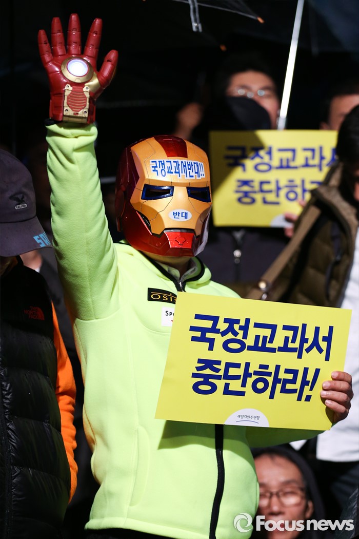 | △ 국정교과서 반대하는 아이언맨 |