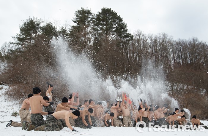 (평창=포커스뉴스) 28일 강원도 평창군 황병산 해병대 산악 종합훈련장에서 열린 '한·미 해병대 연합 동계 설한지 훈련'에 해병대 수색대대와 미 해병대 3사단 수색중대 장병들이 참가하고 있다.