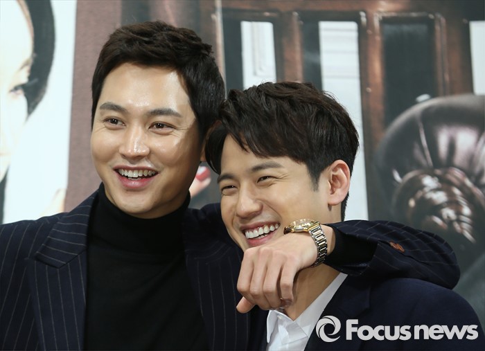 (서울=포커스뉴스) 28일 오후 서울 강남구 임피리얼 팰리스 호텔에서 열린 KBS 2TV 저녁 일일드라마 '천상의 약속' 제작발표회에 참석한 배우 송종호(왼쪽)와 서준영이 포토타임을 갖고 있다.