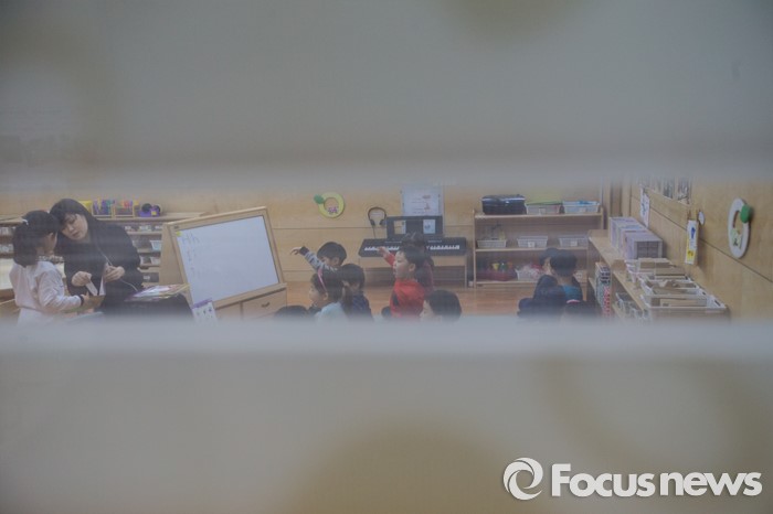 (서울=포커스뉴스) 만3-5세 유아에게 공통적으로 제공하는 교육, 보육 과정인 누리과정 예산 파행으로 보육대란이 이어지고 있는 28일 오후 서울 종로구 한 어린이집에서 어린이들이 공부 하고 있다.