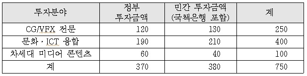 이번 펀드를 통해 고품질 콘텐츠 산업의 제작·기술과 인력을 제공하는 기반산업인 CG산업 및 콘텐츠 산업 전반의 기술경쟁력을 강화할 수 있을 것으로 기대된다.