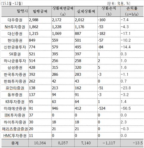 29일 금융감독원이 국회 신학용 의원(무소속)에게 제출한 자료에 따르면 2015년 전체 증권사의 원유 DLS 손실액은 1117억원으로 집계됐다. 평균 손실률은 13.5%를 기록했다.