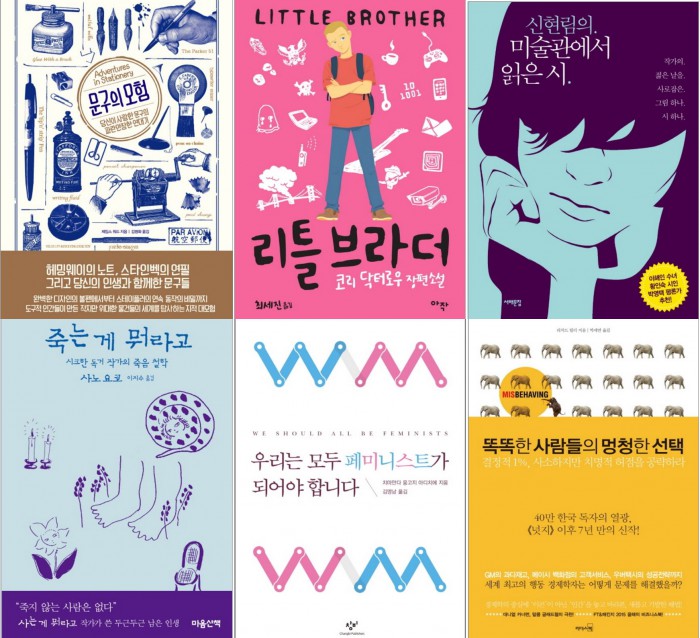 ◇설 추천도서 목록 분류도서명저자출판사 인문시민의 교양채사장웨일북문구의 모험제임스 워드어크로스소설리틀 브라더코리 닥터로우아작 리플라스의 마녀히가시노 게이고현대문학 에세이신현림의 미술관에서 읽은 시신현림서해문집죽는 게 뭐라고사노 요코마음산책 우리집 테라스에 펭귄이 산다톰 미첼21세기북스자기계발나는 단순하게 살기로 했다사사키 후미오비즈니스북스가끔은 격하게 외로워야 한다김정운21세기북스정치/경제우리는 모두 페미니스트가 되어야 합니다치마만다 응고지 아디치에창비똑똑한 사람들의 멍청한 선택리처드 H.탈러리더스북<자료제공= 교보문고, 알라딘 홍보팀>