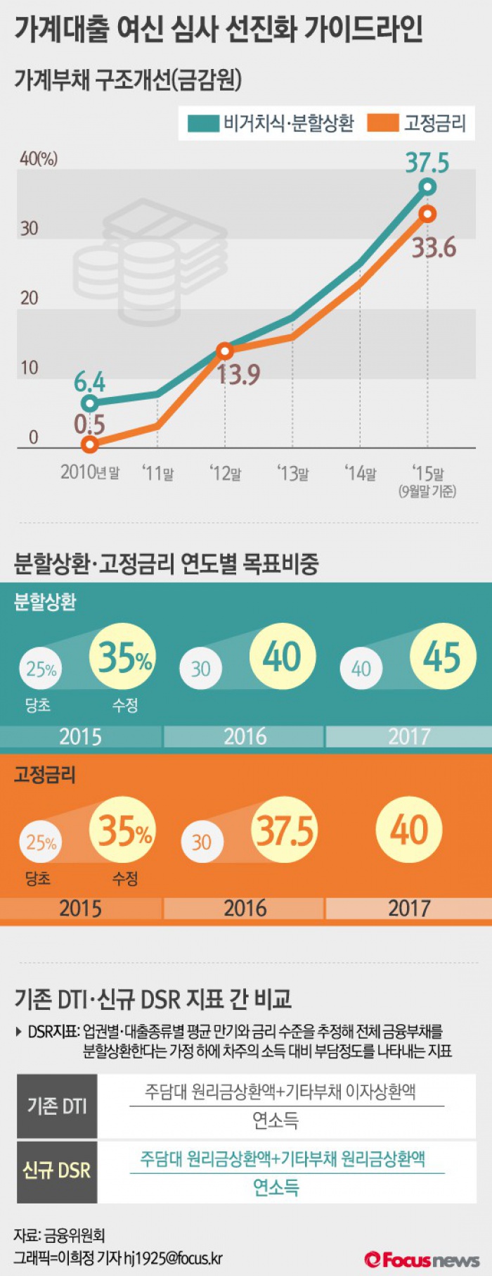 금융위원회는 차주 혼란을 막기 위해 '관계기관 합동대응팀'을 상시 운영하는 한편, 은행별 자체대응반(3~4명)을 편성해 고객의 불편·민원 등에 대해 즉시 대응해 나갈 예정이라고 말했다.(서울=포커스뉴스) 14일 서울 광화문 금융위원회에서 금융위원회, 기획재정부 등으로 꾸려진 가계부채 관리협의채'는 내년 2월(수도권)부터 취급되는 신규 주택담보대출에 대한 '여신 심사 선진화'방안을 발표했다. 이번 방안에는 금리 변동에 따른 가계부채 리스크를 줄이기 위해 비거치식·고정금리·분할상환 대출을 적극 유도하고 차주의 상환능력을 꼼꼼히 심사하겠다는 내용을 담았다. 2015.12.14 이희정 기자