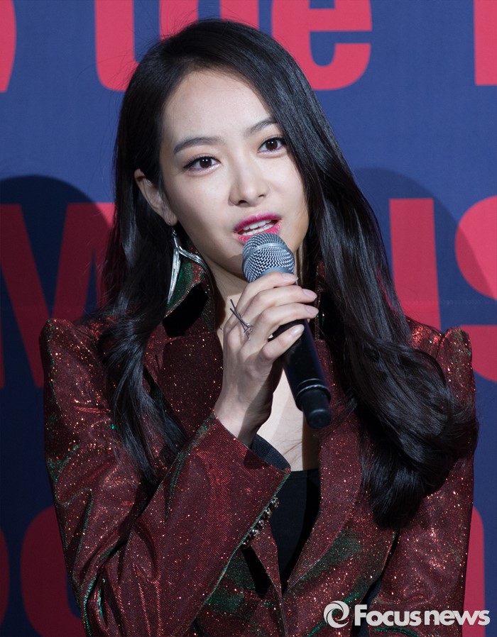 (서울=포커스뉴스) 31일 오후 서울 송파구 올림픽공원 올림픽홀에서 걸그룹 f(x) 멤버 빅토리아가 첫 단독 콘서트 'DIMENSION 4 - Docking Station' 공연에 앞서 취재진 질문에 답하고 있다.