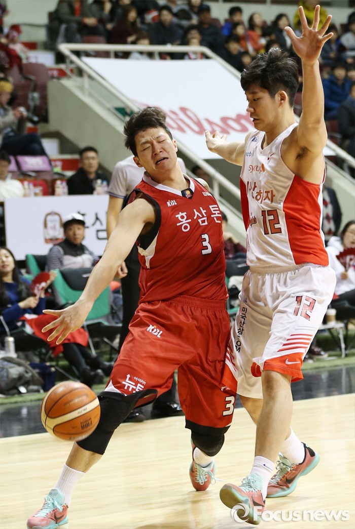 (안양=포커스뉴스) 31일 안양실내체육관에서 열린 2015-2016 프로농구 KGC-SK 경기에서 KGC 이정현의 돌파를 SK 이대헌이 저지하고 있다.