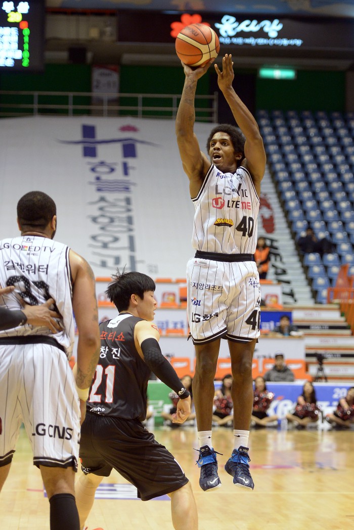 LG는 길렌워터(20득점 8리바운드)와 맥키식(20득점 4리바운드 4어시스트)이 40득점을 합작한 가운데 김종규(12득점 8리바운드) 기승호(10득점)가 두자릿수 득점으로 지원했다. KT는 외국인선수 제스퍼 존슨이 4득점 부진으로 득점 동력을 살리지 못했다. 블레이클리가 27득점 13리바운드로, 조성민이 15득점 2리바운드로 힘을 냈지만 제스퍼 존슨의 부진을 이겨내기는 쉽지 않았다.남자프로농구 LG 외국인선수 맥키식이 5일 열린 KT와의 경기에서 점프슛을 시도하고 있다. <사진제공=프로농구연맹>