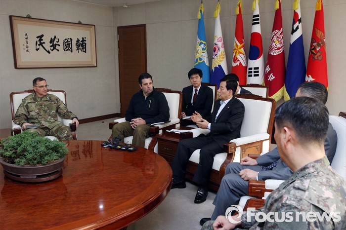 아울러 김 본부장은 "한·미 연합방위태세를 긴밀하게 하고, 주변국과의 국방 협력을 강화하겠다"며 "금년도 KR(키 리졸브)·FE(독수리 연습) 연습을 최첨단·최대규모로 실시하고 연합무력시위를 준비 중에 있다"고 보고했다.