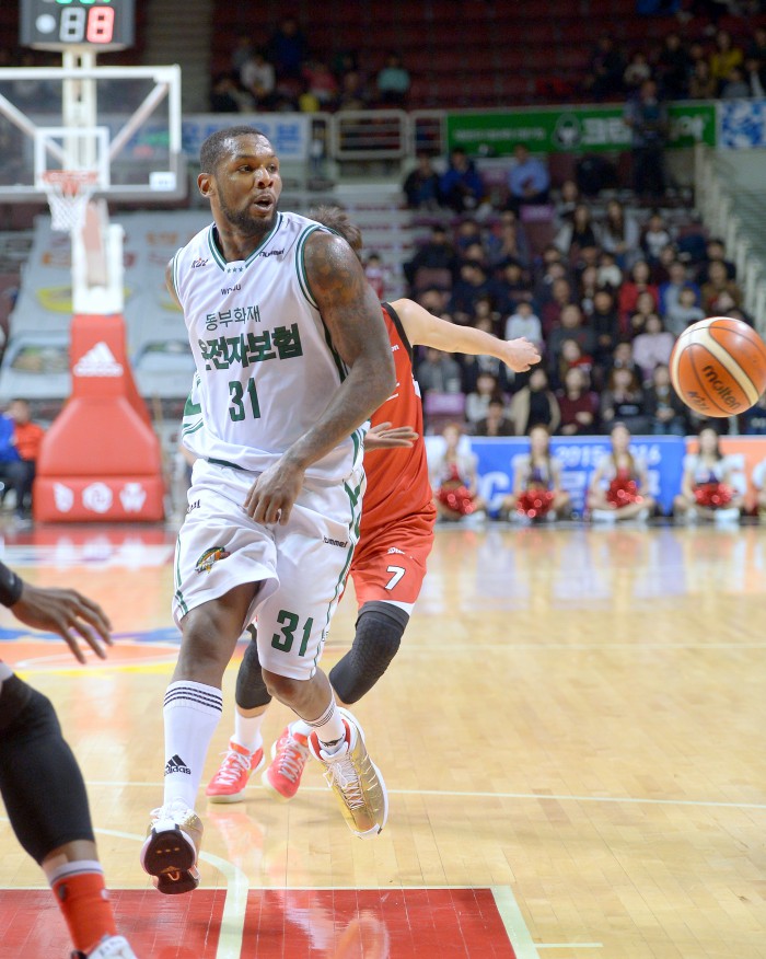 경기 막판 동부는 맥키네스의 연이은 득점과 박지훈의 3점슛으로 재역전에 성공한 뒤 미세한 리드를 놓치지 않고 6강 플레이오프 진출에 확정할 수 있었다. 동부 외국인선수 웬델 맥키네스는 36득점 9리바운드 4어시스트로 공격 중심을 잡았다. 로드 벤슨도 11득점 9리바운드로 KGC와의 치열한 접전을 승리로 이끄는 공신이 됐다. KGC는 외국인선수 로드가 20득점 10리바운드, 마리오 리틀이 18득점 5리바운드를 기록했지만 패배를 막지 못했다.남자프로농구 동부 외국인선수 맥키네스가 8일 열린 KGC와의 경기에서 등 뒤로 패스하고 있다. <사진제공=프로농구연맹>