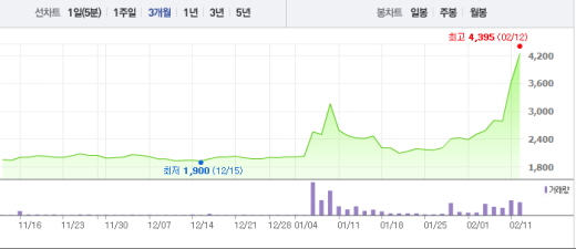 12일 오전 9시42분 현재 방산 관련 전자전시스템과 특수 전원공급장치를 제조 판매하는 빅텍은 전일 대비 655원(18.07%) 오른 4280원에 거래되고 있다.