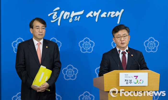 한편 정부합동대책반장으로 선임된 이석준 국무조정실장은 "개성공단 입주기업의 피해를 최소화하기 위한 1대 1 맞춤형 지원팀을 꾸려서 운영할 것"이라면서 "123개 입주기업에 대해 남북경협보험금 등을 신속히 지급하고 현장기업지원반에서 추가조치를 해나갈 것"이라고 설명했다.12일 오후 서울 종로구 정부서울청사 합동브리핑실에서 홍용표(오른쪽) 통일부 장관이 개성공단 폐쇄에 대한 성명서를 발표하고 있다. 2016.02.12 김인철 기자