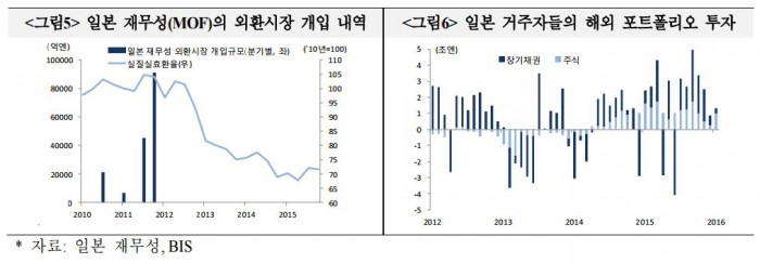 일본 거주자들의 해외 주식∙채권(중장기) 투자 규모는 2013년 9조1000억엔 감소에서 2014년 5조1000억엔으로 대폭 늘었으며 2015년에는 25조2000억엔으로 급증했다. 이 같은 돈이 일본으로 회귀할 경우 엔화 수요가 더욱 커져 엔화 가치를 더욱 끌어올린다는 분석이다.