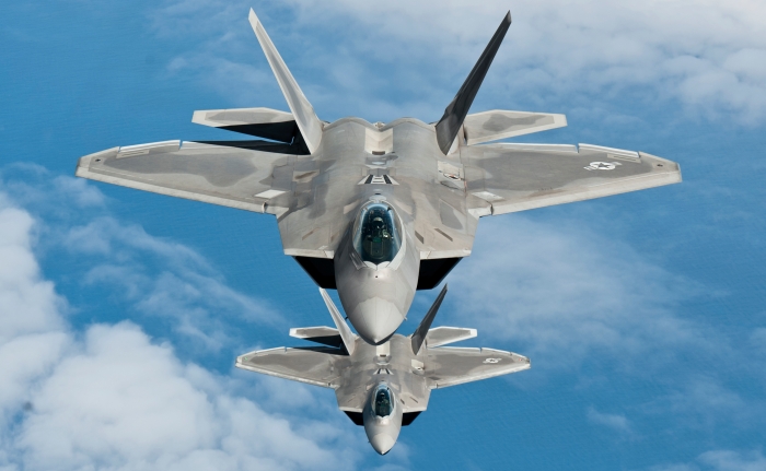 최강의 전투기로 평가 받는 F-22는 적의 레이더망을 효과적으로 피할 수 있는 스텔스 기능과 최고 속력 마하 2.5의 성능을 갖췄으며, 작전 반경은 2000여km에 달한다.