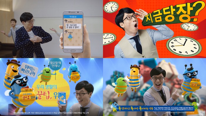 우리은행은 13일 유재석을 새 광고모델로 한 TV광고를 공개했다. 광고 속 유재석은 갑자기 대출, 환전 등 금융서비스가 필요한 상황을 맞는다. 당황하지 않고 우리은행 모바일 메신저 서비스 '위비톡'으로 위기를 모면한다. 이어 위비뱅크 캐릭터 '위비'와 함께 춤추며 자연스러운 연기를 선보였다.