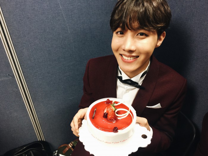 ▲ “홉아! 나이는 숫자에 불과해! 그런 거에 대해서 전혀 걱정하지 말고 지금 사랑받고 있는 순간들을 기억해라! 지금 이 순간이 가장 행복할 때다~”보이그룹 방탄소년단의 멤버 제이홉(정호석)이 18일 생일을 맞았다. <사진제공=빅히트엔터테인먼트>(서울=포커스뉴스) 17일 오후 서울 송파구 올림픽공원 올림픽홀에서 열린 제5회 가온차트 K-POP 어워드에 참석한 아이돌그룹 방탄소년단의 멤버들이 포토타임을 갖고 있다. 2016.02.17 김유근 기자