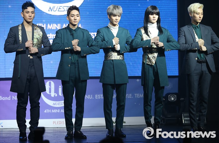 소속사 후배인 세븐틴은 지난해 왕성한 활약을 펼치며 ‘골든디스크’ ‘서울가요대상’에서 신인상을 받는 등 큰 사랑을 받았다. 뉴이스트보다 국내 인지도가 더 높은 것에 대해 “자극이 안 된다고 하면 거짓말”이라고 속내를 털어놨다.