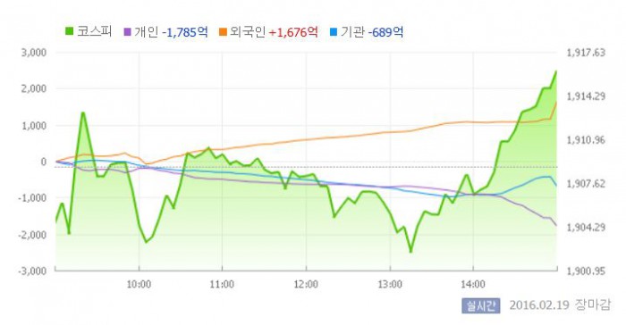 이날 코스피는 전일 대비 0.23% 하락한 1904.50에 장을 시작했다. 이후 지수는 국제유가 변동성의 영향으로 등락을 거듭했다. 그러나 외국인들이 대규모 매수에 나서자 상승세로 전환했다.