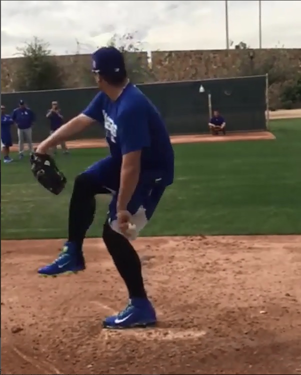 류현진은 19일(한국시간) 자신의 소셜네트워크서비스(SNS)에 'First time with catcher down(포수를 앉혀놓고는 처음)'라는 제목과 함께 투구 영상을 공개했다. 영상 속 류현진은 가벼운 차림으로 마운드에 서서 포수에게 공을 던졌다.