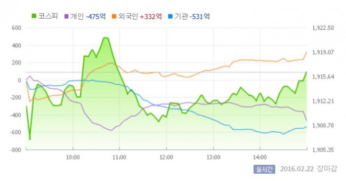 이날 코스피는 지난 주말 국제유가 급락과 미국 증시가 혼조 양상을 보인 탓에 하락세로 출발했다. 그러나 장 막판 외국인의 순매수에 힘입어 상승 반전에 성공했다. 외국인은 352억원을 순매수하며 매수 기조를 이어갔다.