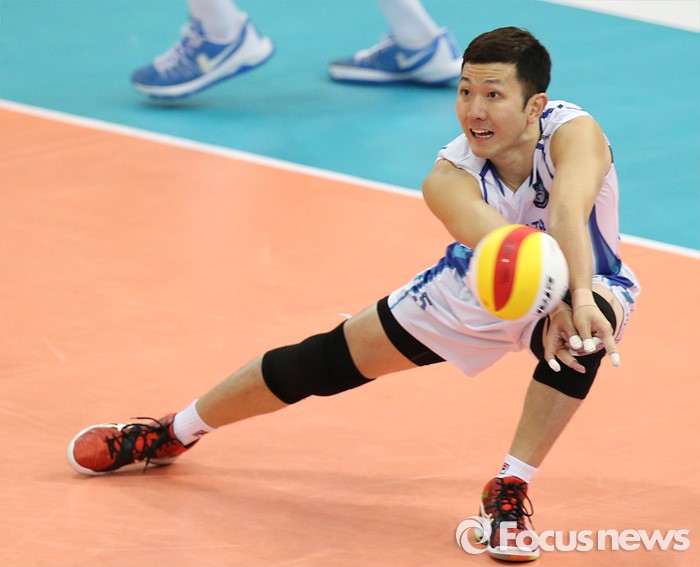 (수원=포커스뉴스) 23일 수원실내체육관에서 열린 '2015-2016NH농협 V-리그' 남자부 한국전력-삼성화재 경기에서 삼성화재 리베로 곽동혁이 안정적으로 리시브하고 있다.